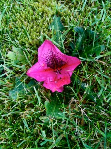 How did ONE flower get out in the middle of my yard when there are dozens on the ground around the bush? Only God knows…